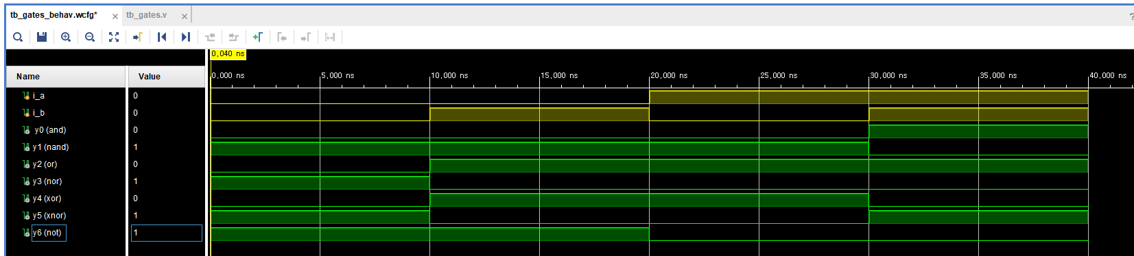 gates dut( // dut(design under test, 관용어) -> 시뮬레이션 대상 instance, instanciation